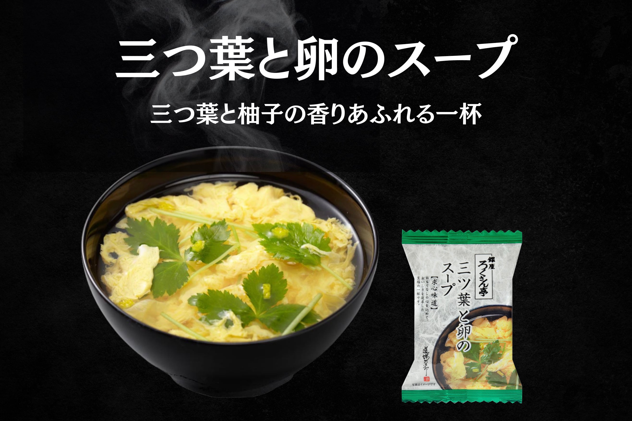三ツ葉の爽やかな香りと、卵の優しい風味が調和した、癒しのスープ。